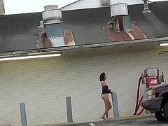 Cock flash in parking lot lubed up to the max