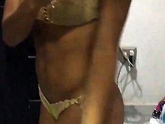 Hot teen babe posing in micro bikini flashing and stripping